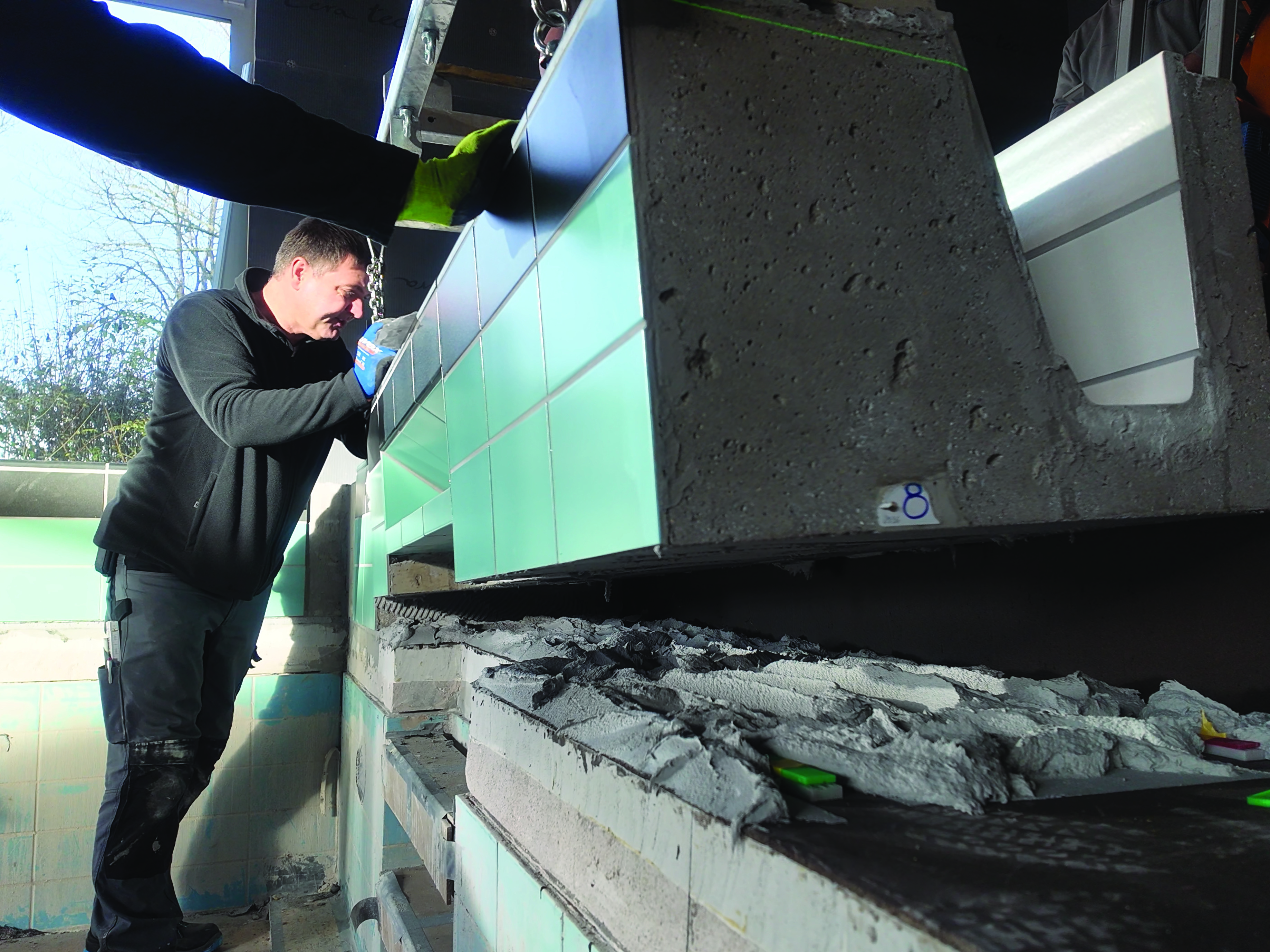 A key advantage of CarboCeram lies in its consistent prefabrication, whilst demolition and waterproofing work takes place in parallel on site. “This prefabricated construction method clearly offers the advantage of saving time. By pre-producing the prefabricated elements in the factory under ideal conditions, we save a considerable amount of construction time,” explains Andreas Kramer, Head of Architectural Services at Agrob Buchtal.