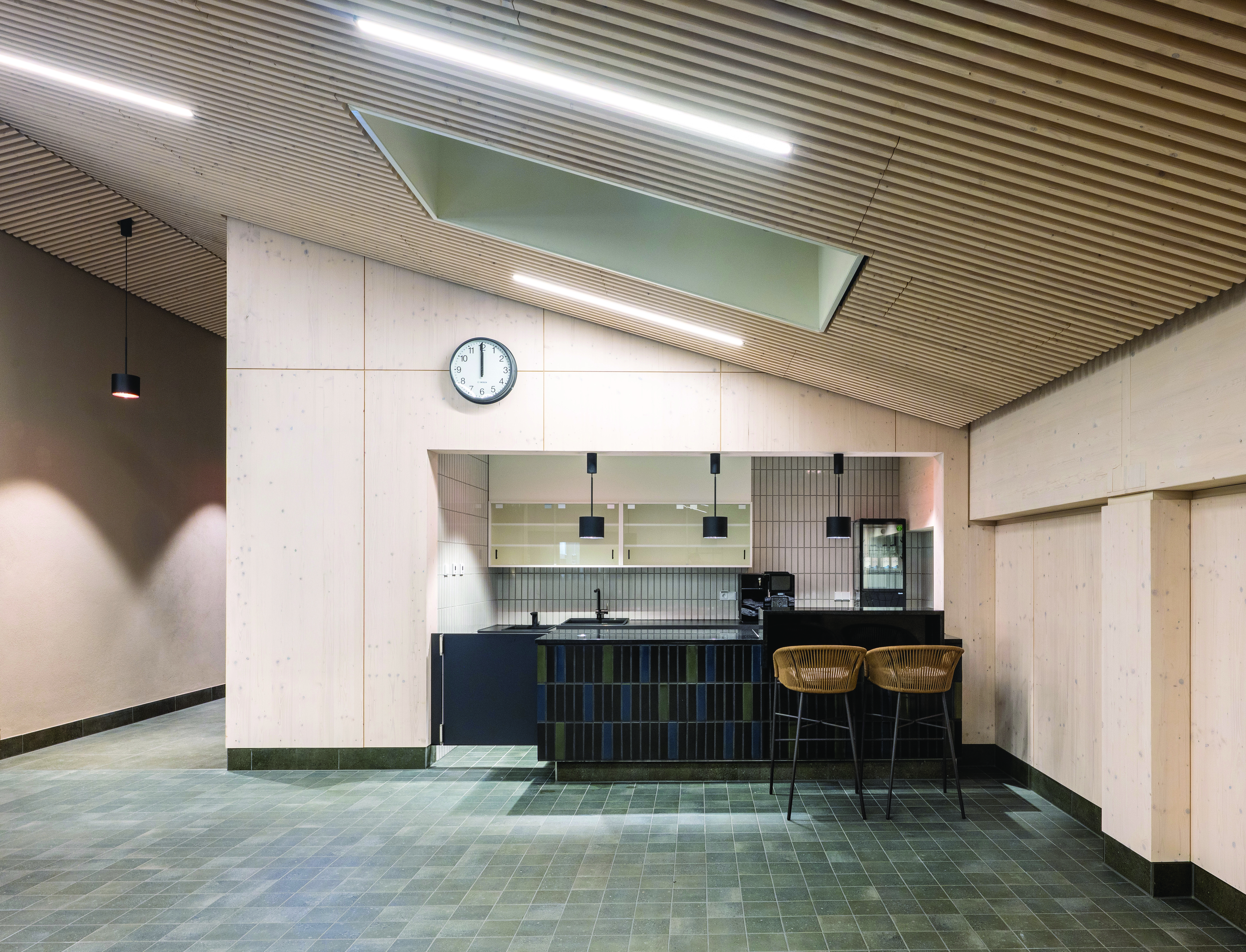 In addition to its architectural quality, the project also pursues a sustainable energy concept. A roof-integrated photovoltaic system, along with energy-efficient building services and heat recovery systems, reduce the facility’s energy requirements and support resource-efficient operation. The ceramic materials also contribute to sustainability here. In addition to their durability, their Hytect surface facilitates cleaning and ensures a permanently hygienic environment.
