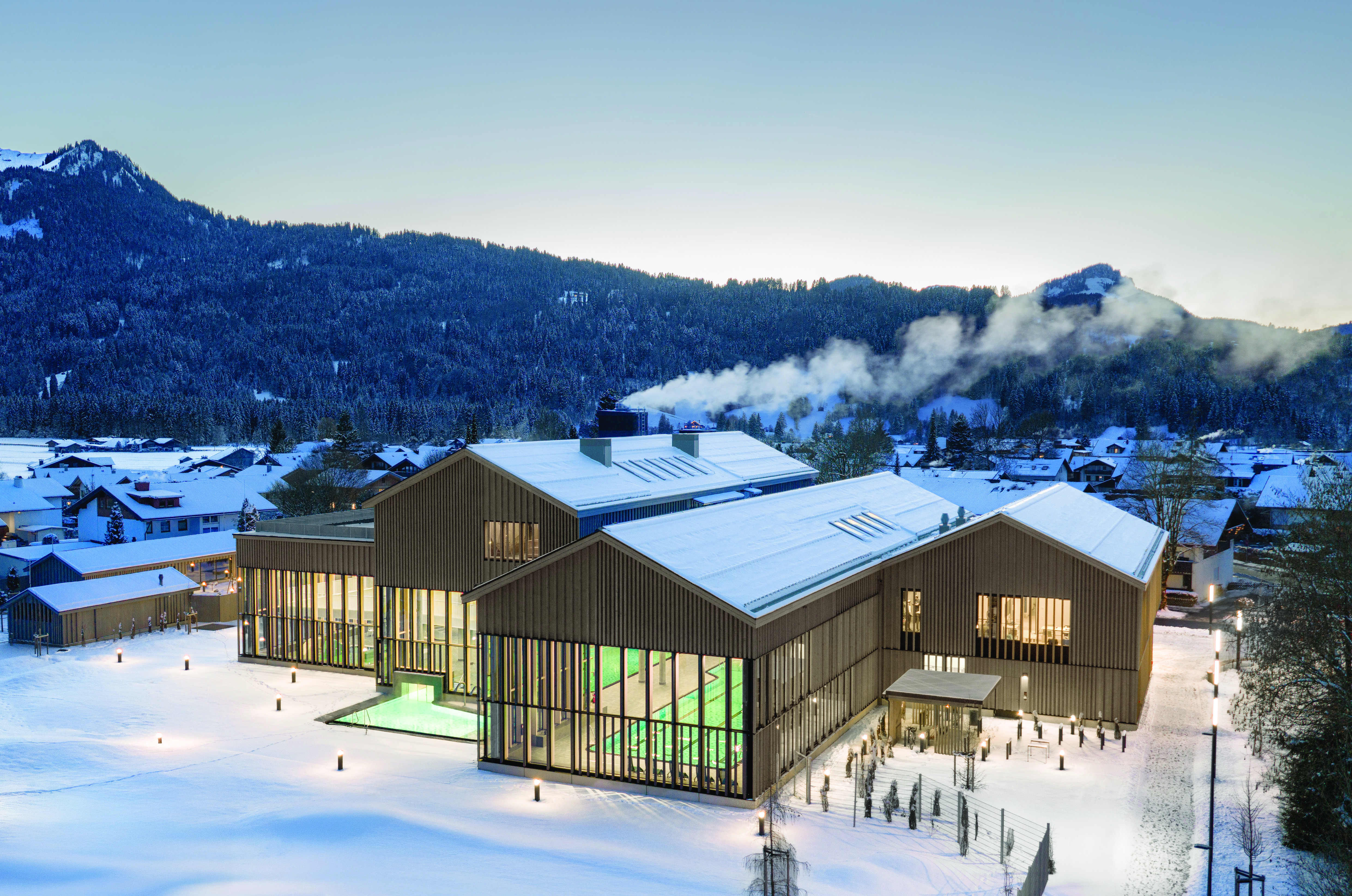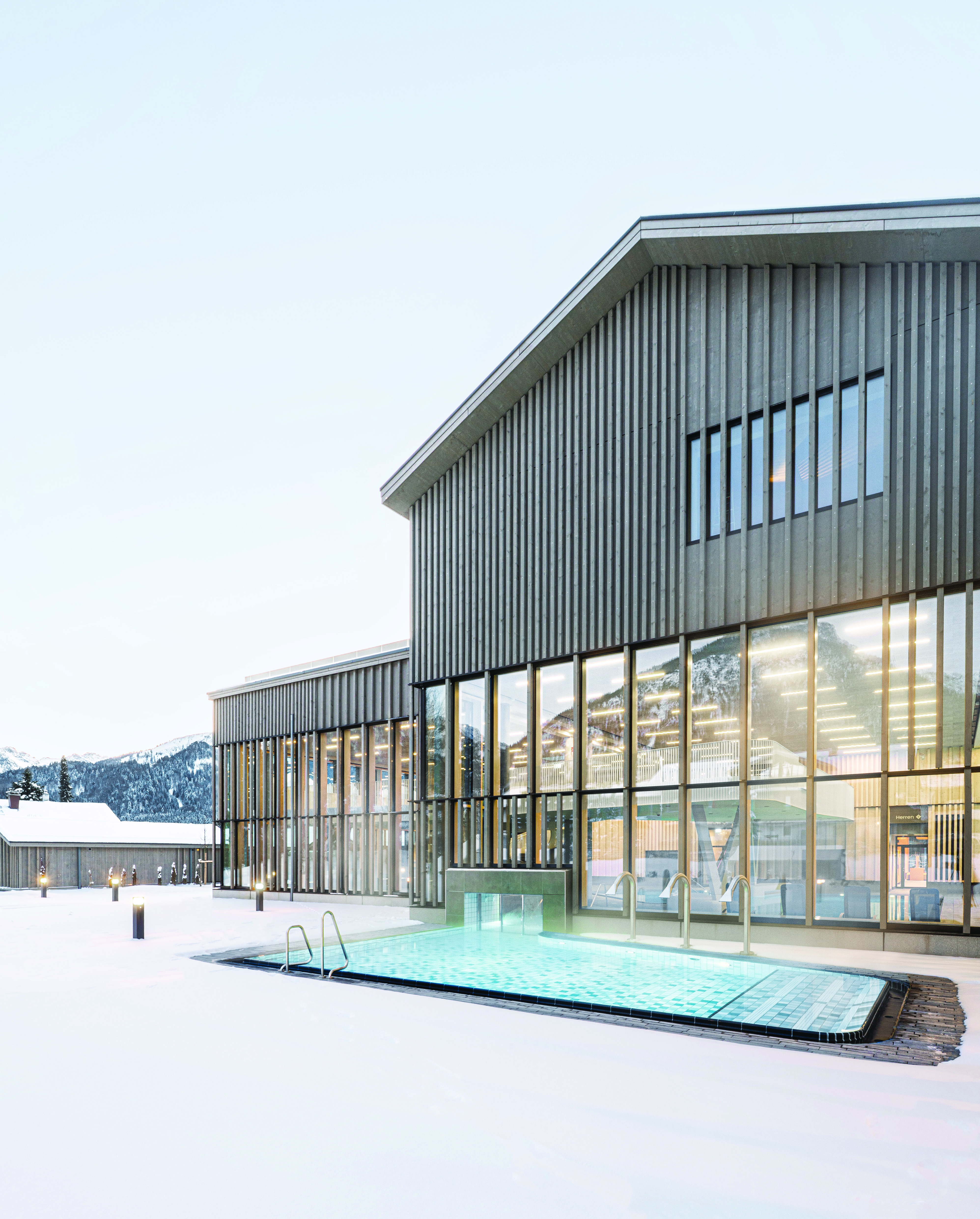 Oberstdorf, March 2026 – The new thermal spa replaces the former baths on the site and develops a spatial concept that combines wellness, sport and relaxation in different areas. Around 9,400 m² of gross floor area provide the setting for the thermal spa, sauna and wellness facilities, as well as catering. Generous glazed areas open up the bathing hall to the landscape and offer impressive views of the Allgäu Alps.