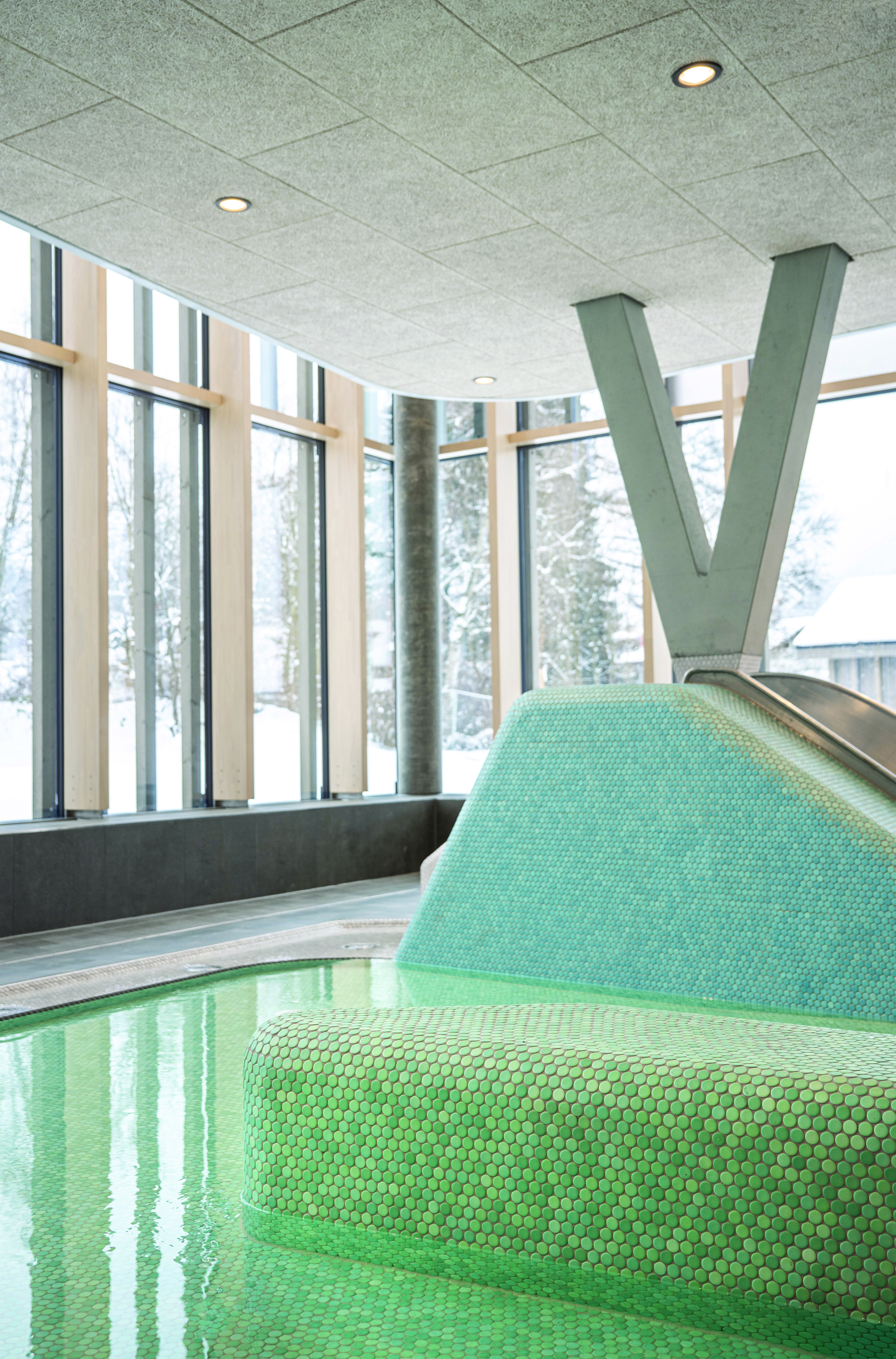 The new Therme Oberstdorf thus not only creates a tourist attraction for the region, but also serves as an example of how architecture, landscape and materials can be brought together to form a harmonious overall concept. The ceramic solutions from Agrob Buchtal make an important contribution to this: they combine design quality with the high functional requirements of modern swimming pool architecture.
